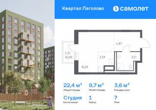 Строим кварталы для жизни с заботой о будущем. Предлагается квартира студия комфорт-класса 22,35 кв.м в корпусе 1 на 7 этаже, в ЖК "Квартал Лаголово"