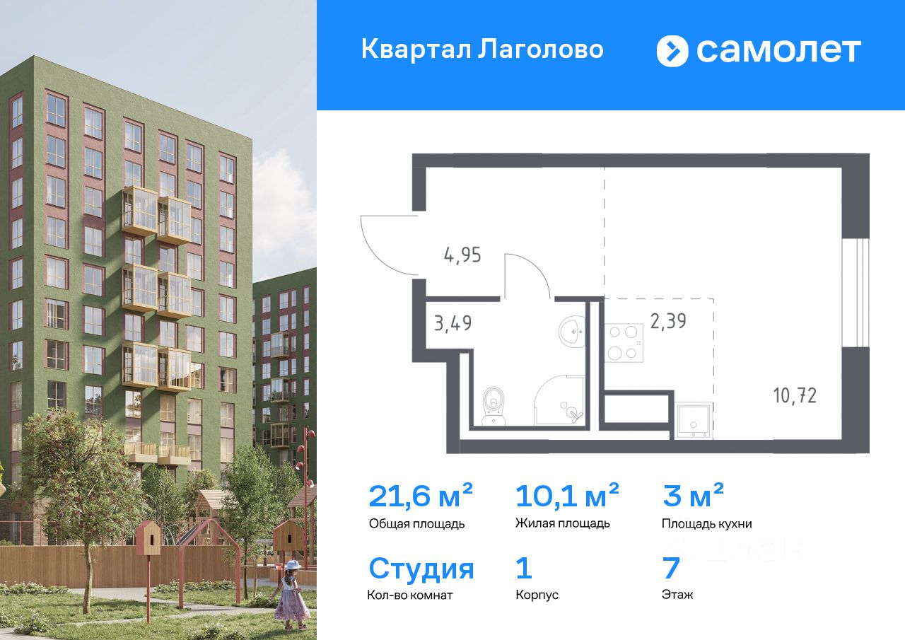 Строим кварталы для жизни с заботой о будущем. Предлагается квартира студия комфорт-класса 21,55 кв.м в корпусе 1 на 7 этаже, в ЖК "Квартал Лаголово"