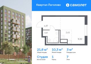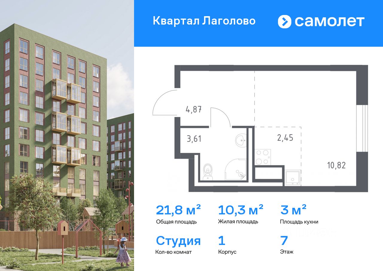 Строим кварталы для жизни с заботой о будущем. Предлагается квартира студия комфорт-класса 21,75 кв.м в корпусе 1 на 7 этаже, в ЖК "Квартал Лаголово"