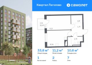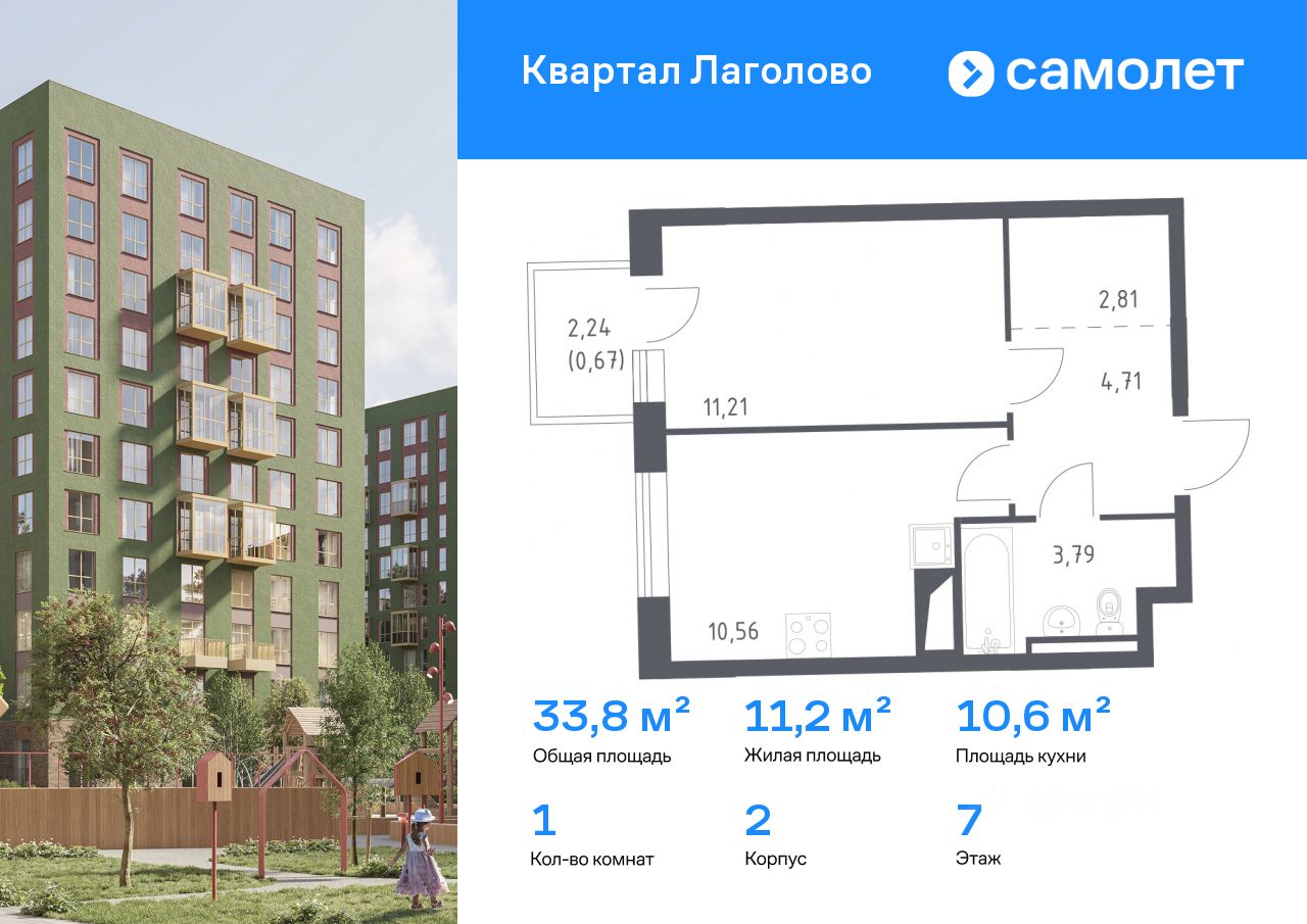 Строим кварталы для жизни с заботой о будущем. Предлагается 1-комнатная квартира комфорт-класса 33,75 кв.м в корпусе 2 на 7 этаже, в ЖК "Квартал Лаголово"