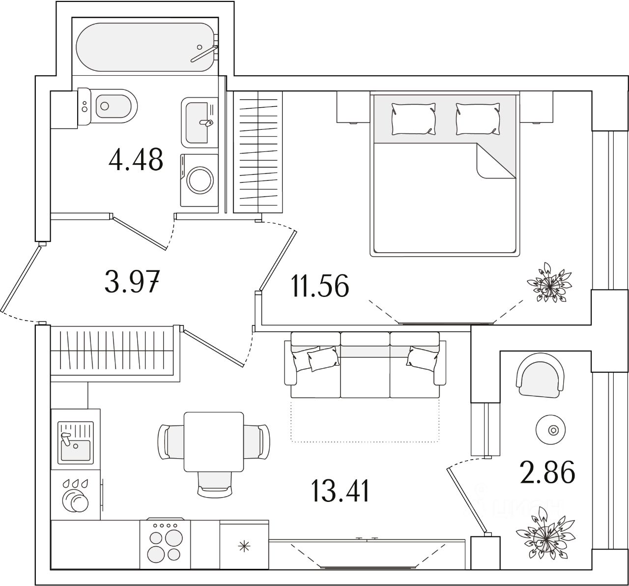 Продаётся 1-комнатная квартира в строящемся доме (Корпус 1 (секции 1, 2, 3)), срок сдачи: I-кв. 2029, общей площадью 34.85 кв.м., на 2 этаже. Новый жилой комплекс "Аурум" от застройщика "РосСтройИнвест" расположен по адресу: г. Санкт-Петербург, Кондратьевский проспект