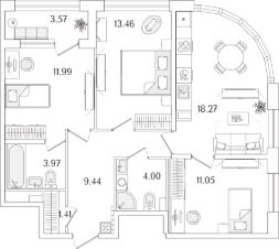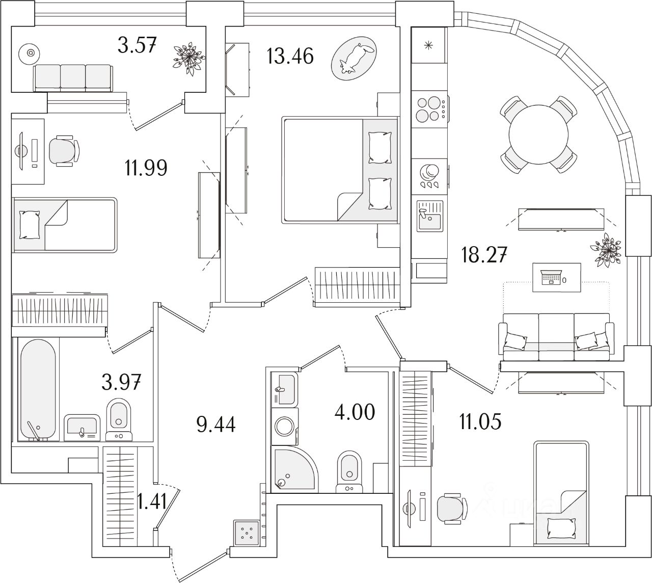 Продаётся 3-комнатная квартира в строящемся доме (Корпус 1 (секции 1, 2, 3)), срок сдачи: I-кв. 2029, общей площадью 75.38 кв.м., на 2 этаже. Новый жилой комплекс "Аурум" от застройщика "РосСтройИнвест" расположен по адресу: г. Санкт-Петербург, Кондратьевский проспект