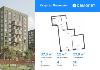 Строим кварталы для жизни с заботой о будущем. Предлагается 1-комнатная квартира комфорт-класса 37,34 кв.м в корпусе 4 на 10 этаже, в ЖК "Квартал Лаголово"
