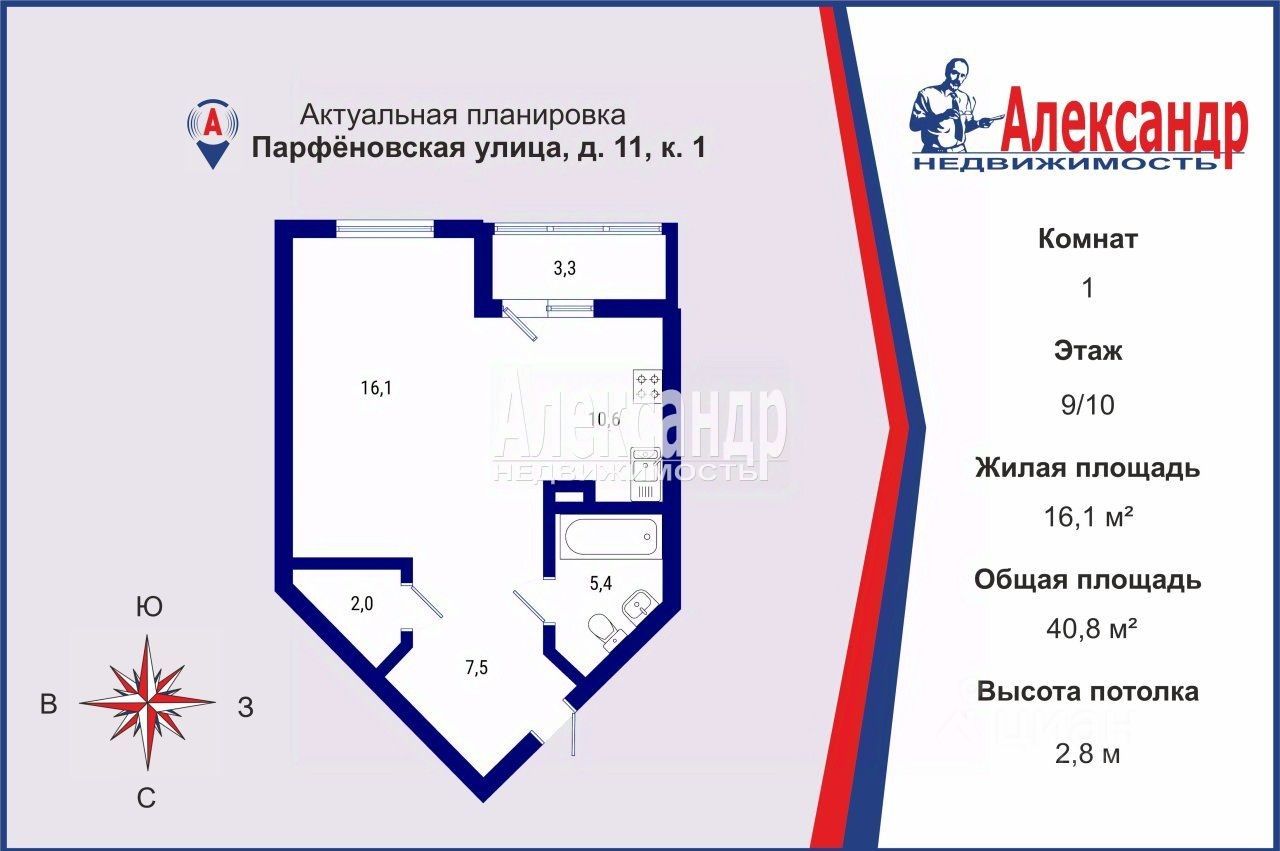 1705166 Предлагается к продаже 1-к квартира 40,8 м² в Адмиралтейском районе Санкт-Петербурга, в новом, высокого комфорт-класса жилом комплексе Галактика.