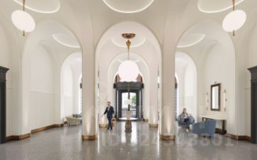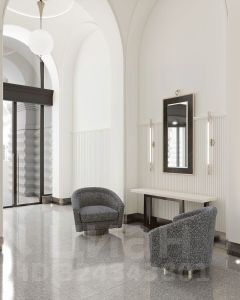 Во входной зоне жильцов встречает нарядный холл, стены которого украшены произведениями искусства.