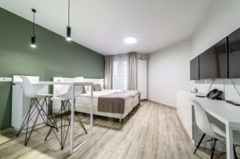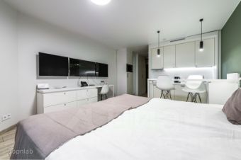 Номер полностью укомплектован управляющей компанией - в нем есть все необходимое для жизни гостей на короткий и длинный период.