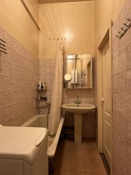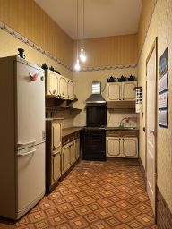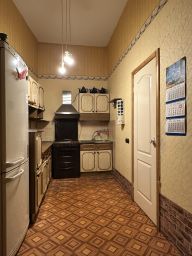 Двухкомнатная квартира общей площадью 67,8 кв.м. + кладовка 2,85 кв.м. также с очень высокими потолками, площадь кухни: 15 метров, сан/узел совмещённый,