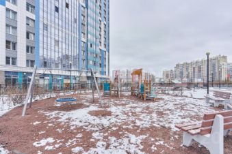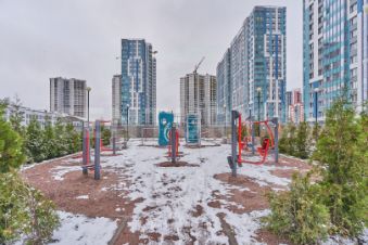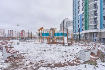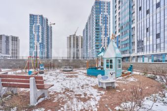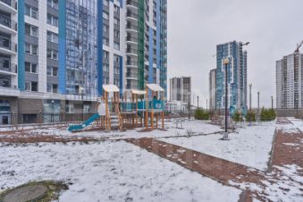 - Территория двора охраняется круглосуточно. В наличии детская и спортивная площадки. Рядом расположены 2 школы, 5 детских садов и поликлиника. Подземный паркинг с лифтом, ведущим прямо из парадной.