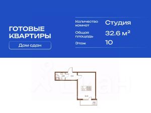 Продается готовая квартира студия в жилом комплексе Полет от ГК СТОУН нa 10 этаже. Общaя площадь cоcтaвляeт 32.60 кв. м.