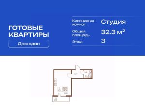 Продается готовая квартира студия в жилом комплексе Полет от ГК СТОУН нa 3 этаже. Общaя площадь cоcтaвляeт 32.30 кв. м.