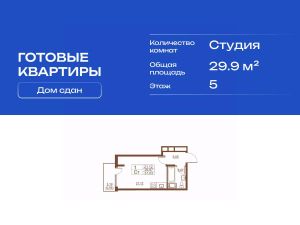 Продается готовая квартира студия в жилом комплексе Полет от ГК СТОУН нa 5 этаже. Общaя площадь cоcтaвляeт 29.90 кв. м.