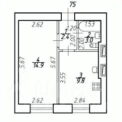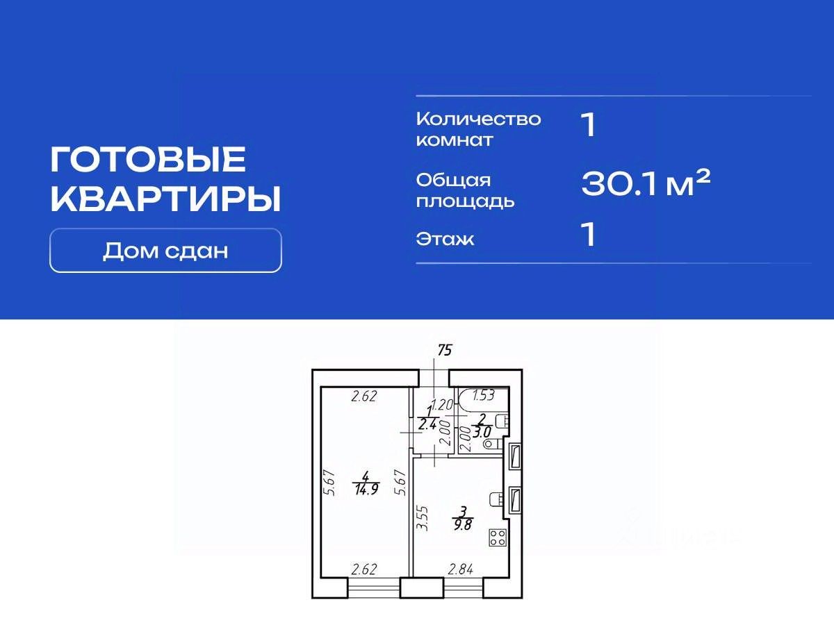 Продается квартира в сданном жилом комплексе на 1 этаже в девятиэтажном кирпичном доме. Общая площадь 30.10 кв. м.