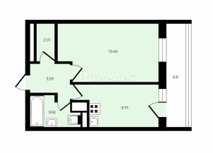 - Вместительный санузел 3.9м2;