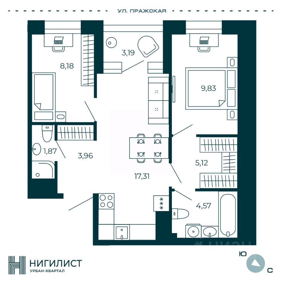Продаётся 2-комнатная квартира в строящемся доме (Корпус 1), срок сдачи: I-кв. 2028, общей площадью 52.44 кв.м., на 8 этаже. Новый жилой дом от застройщика "СЗ БЛЭКСМИТ" расположен по адресу: Санкт-Петербург, Улица Фучика, д. 17, литера В.