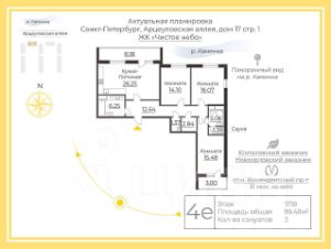 Две комнаты и кухня смотрят на р. Каменку - видовой 7 этаж открывает прекрасную панораму - вы будете наслаждаться красивыми закатами и видом на парк, который будет реализован рядом с жилым комплексом.