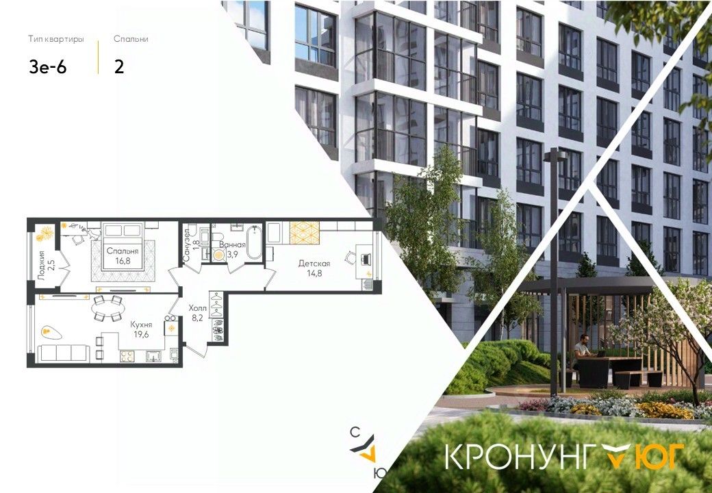 Внимание на кухню! Двухсторонняя квартира. Кронунг ЮГ- современный жилой комплекс комфорт-класса на берегу реки Дудергофки. Невысокая этажность, современная архитектура. Благоустроенный внутренний двор будет включать в себя спортивные площадки, в том числе памп-трек, места для отдыха, прогулочную набережную, детские игровые площадки, места для выгула собак, шезлонги вдоль берега реки Дудергофки. Для автомобилей предусмотрен трехэтажный отдельно стоящий паркинг и парковочные места с зарядными станциями для электромобилей на территории ЖК. Локация: • 1 минута до автобусной остановки • 20 минут до метро • 5 минут до КАД