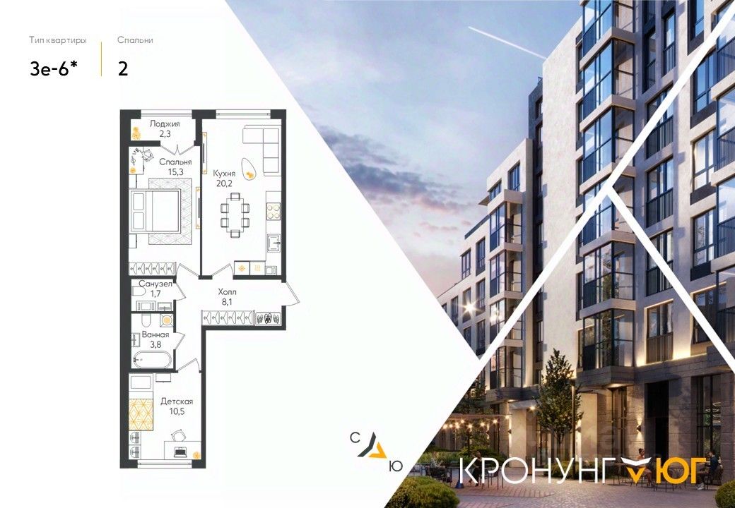 Кронунг ЮГ- современный жилой комплекс комфорт-класса на берегу реки Дудергофки. Невысокая этажность, современная архитектура. Благоустроенный внутренний двор будет включать в себя спортивные площадки, в том числе памп-трек, места для отдыха, прогулочную набережную, детские игровые площадки, места для выгула собак, шезлонги вдоль берега реки Дудергофки. Для автомобилей предусмотрен трехэтажный отдельно стоящий паркинг и парковочные места с зарядными станциями для электромобилей на территории ЖК.