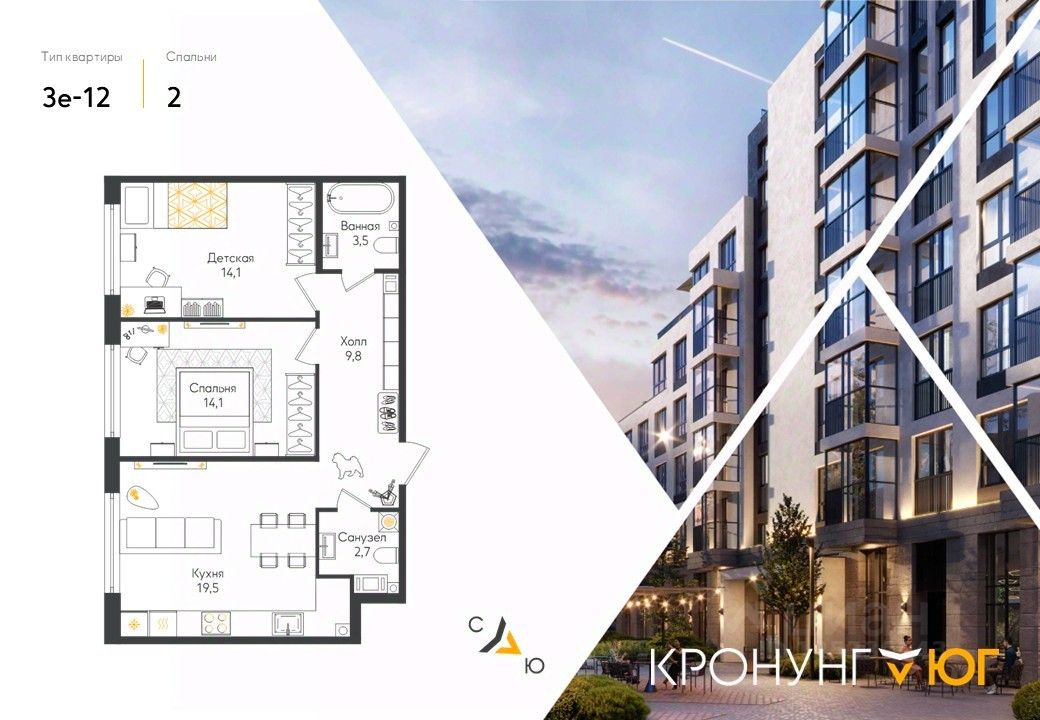 Кронунг ЮГ- современный жилой комплекс комфорт-класса на берегу реки Дудергофки. Невысокая этажность, современная архитектура. Благоустроенный внутренний двор будет включать в себя спортивные площадки, в том числе памп-трек, места для отдыха, прогулочную набережную, детские игровые площадки, места для выгула собак, шезлонги вдоль берега реки Дудергофки. Для автомобилей предусмотрен трехэтажный отдельно стоящий паркинг и парковочные места с зарядными станциями для электромобилей на территории ЖК.