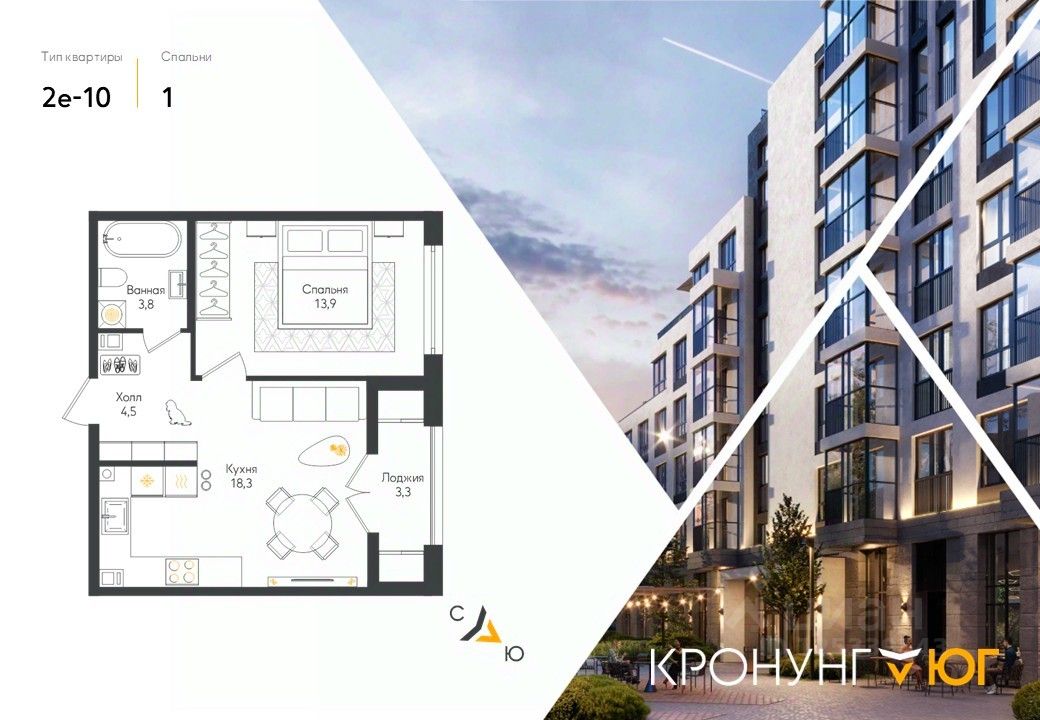 Кронунг ЮГ- современный жилой комплекс комфорт-класса на берегу реки Дудергофки. Невысокая этажность, современная архитектура. Благоустроенный внутренний двор будет включать в себя спортивные площадки, в том числе памп-трек, места для отдыха, прогулочную набережную, детские игровые площадки, места для выгула собак, шезлонги вдоль берега реки Дудергофки. Для автомобилей предусмотрен трехэтажный отдельно стоящий паркинг и парковочные места с зарядными станциями для электромобилей на территории ЖК.
