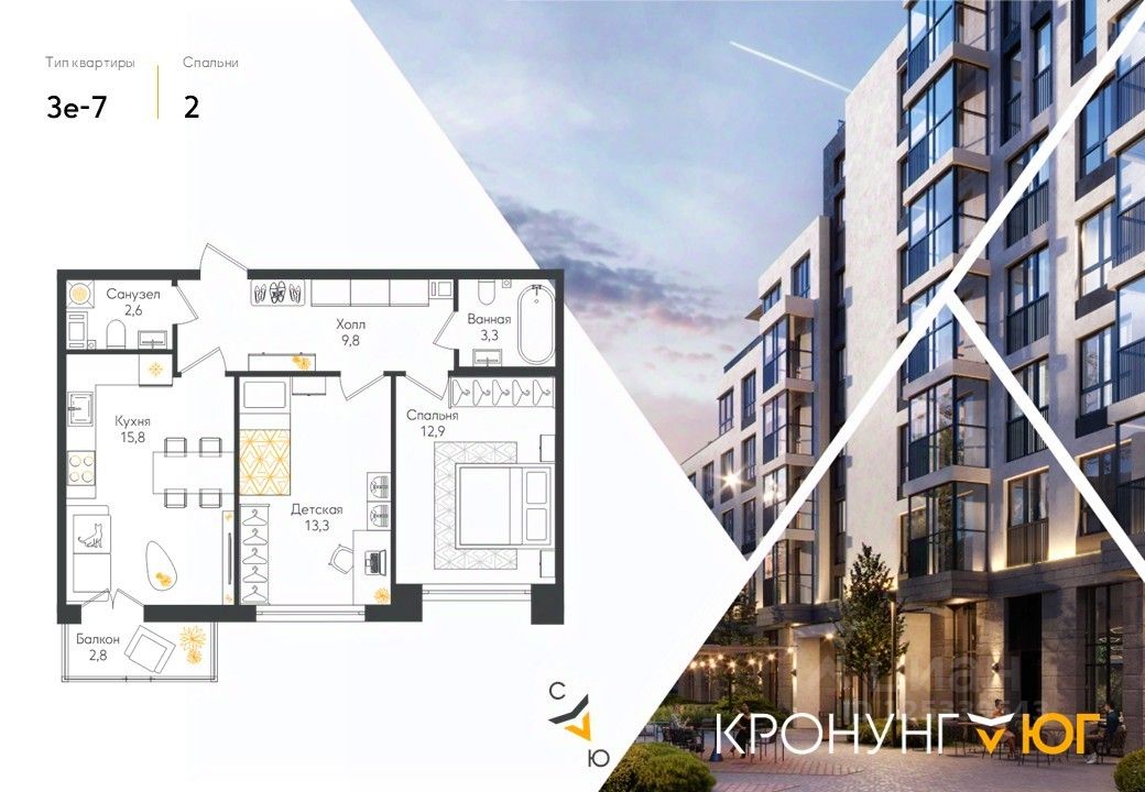 Кронунг ЮГ- современный жилой комплекс комфорт-класса на берегу реки Дудергофки. Невысокая этажность, современная архитектура. Благоустроенный внутренний двор будет включать в себя спортивные площадки, в том числе памп-трек, места для отдыха, прогулочную набережную, детские игровые площадки, места для выгула собак, шезлонги вдоль берега реки Дудергофки. Для автомобилей предусмотрен трехэтажный отдельно стоящий паркинг и парковочные места с зарядными станциями для электромобилей на территории ЖК.