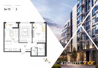 Хит продаж! Внимание на кухню-гостиную. Кронунг ЮГ- современный жилой комплекс комфорт-класса на берегу реки Дудергофки. Невысокая этажность, современная архитектура. Благоустроенный внутренний двор будет включать в себя спортивные площадки, в том числе памп-трек, места для отдыха, прогулочную набережную, детские игровые площадки, места для выгула собак, шезлонги вдоль берега реки Дудергофки. Для автомобилей предусмотрен трехэтажный отдельно стоящий паркинг и парковочные места с зарядными станциями для электромобилей на территории ЖК. Локация: • 1 минута до автобусной остановки • 20 минут до метро • 5 минут до КАД