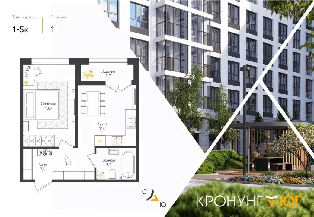 Кронунг ЮГ- современный жилой комплекс комфорт-класса на берегу реки Дудергофки. Невысокая этажность, современная архитектура. Благоустроенный внутренний двор будет включать в себя спортивные площадки, в том числе памп-трек, места для отдыха, прогулочную набережную, детские игровые площадки, места для выгула собак, шезлонги вдоль берега реки Дудергофки. Для автомобилей предусмотрен трехэтажный отдельно стоящий паркинг и парковочные места с зарядными станциями для электромобилей на территории ЖК.
