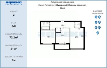 Квартира евро планировки расположена в малонаселённой восьми этажной секции с бесшумными лифтами. В помещении выполнен дизайнерский ремонт в современном стиле. Пространство спроектировано лаконично, функционально и со вкусом. Роскошные увеличенные окна выходят на южную сторону, что позволяет наслаждаться видом на реку Неву.
