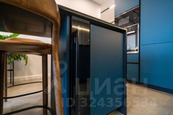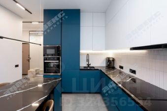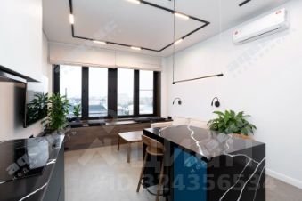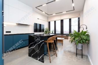 Сердцем квартиры является просторная (21м) кухня-гостиная разделённая на хозяйственную зону и диванную с видом на Неву с петербургским небом. Окно, почти во всю стену, наполняет пространство естественным светом. В кухонный гарнитур встроена бытовая техника. В обеденный остров, из кварцевого агломерата, удобно спрятан винный шкаф.