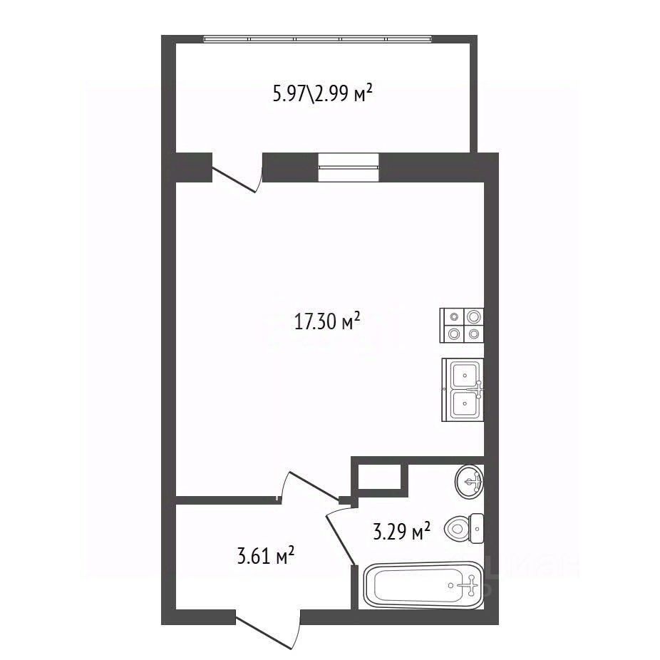 Общая площадь квартиры 23,7 кв.м. + лоджия 6 кв.м.: