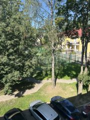 - В комнате - 3 больших окна, окна во двор;