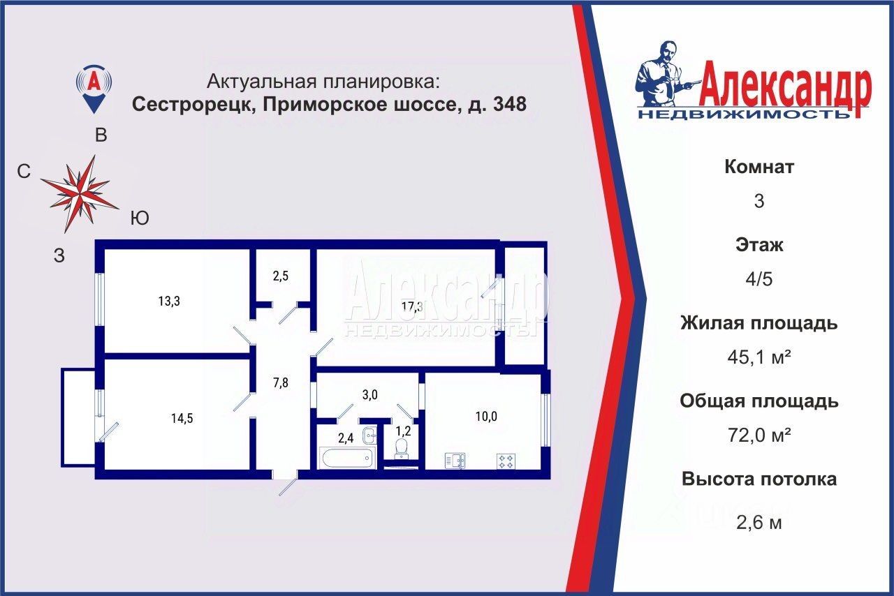 1705164 Продается трехкомнатная квартира 72м² в кирпичном доме.