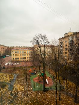 Комната находится в коммунальной квартире коридорного типа (бывшее ведомственное общежитие АО Адмиралтейские верфи) в надежном 6 этажном сталинском доме (потолки 3м, стены 0,6м) в 5 минутах ходьбы от станции метро Парк Победы, в шаговой доступности от метро Московская.