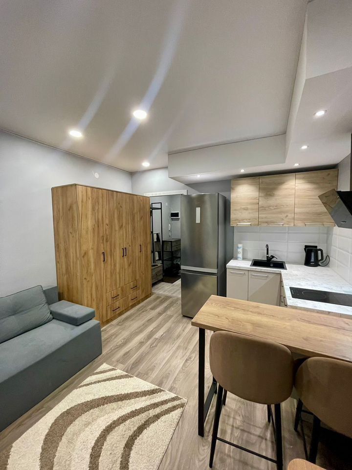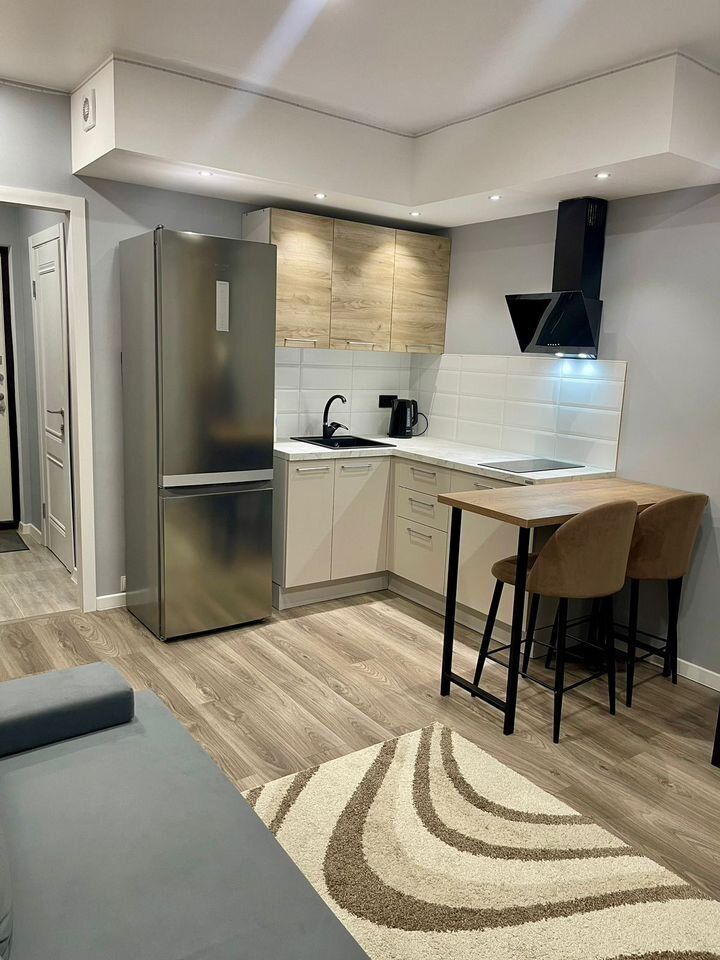 Плoщaдь студии: 21 м2 + 3.1 м2 (балкон c тeплым полoм). Kвapтира выпoлнена в современном стиле и полностью меблирована. Мебель остается, включая кухню и диван. В ней есть вся необходимая бытовая техника. Совмещенная ванная рационально использует пространство. Все отделочные материалы высокого качества и долговечны.