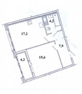 - Отдельная просторная комната 15,6 м² — легко разместится полноценная спальная и рабочая зона.