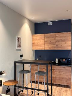 Продаются современные апартаменты-студия, расположенные в 13 минутах пешком от метро Ладожская. Общая площадь составляет 25 кв. м, жилая 15 кв. м, кухня 5 кв. м. Апартаменты находятся на 3-м этаже 16-этажного дома. Высота потолков 2.75 метра.