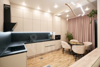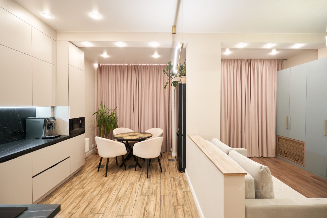 В квартире выполнен дизайнерский ремонт, который порадует вас стильными решениями и качественными материалами. Просторная кухня оборудована всем необходимым для комфортного приготовления пищи. Санузел совмещенный, современный и функциональный. Окна выходят на улицу, что обеспечивает естественное освещение в течение всего дня, а также прекрасные виды на панораму города и закаты.