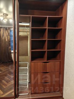 - Вторая комната оборудована шкафом, который был изготовлен по индивидуальному проекту, и через него предусмотрен проход в кладовку — идеальное решение для хранения вещей!