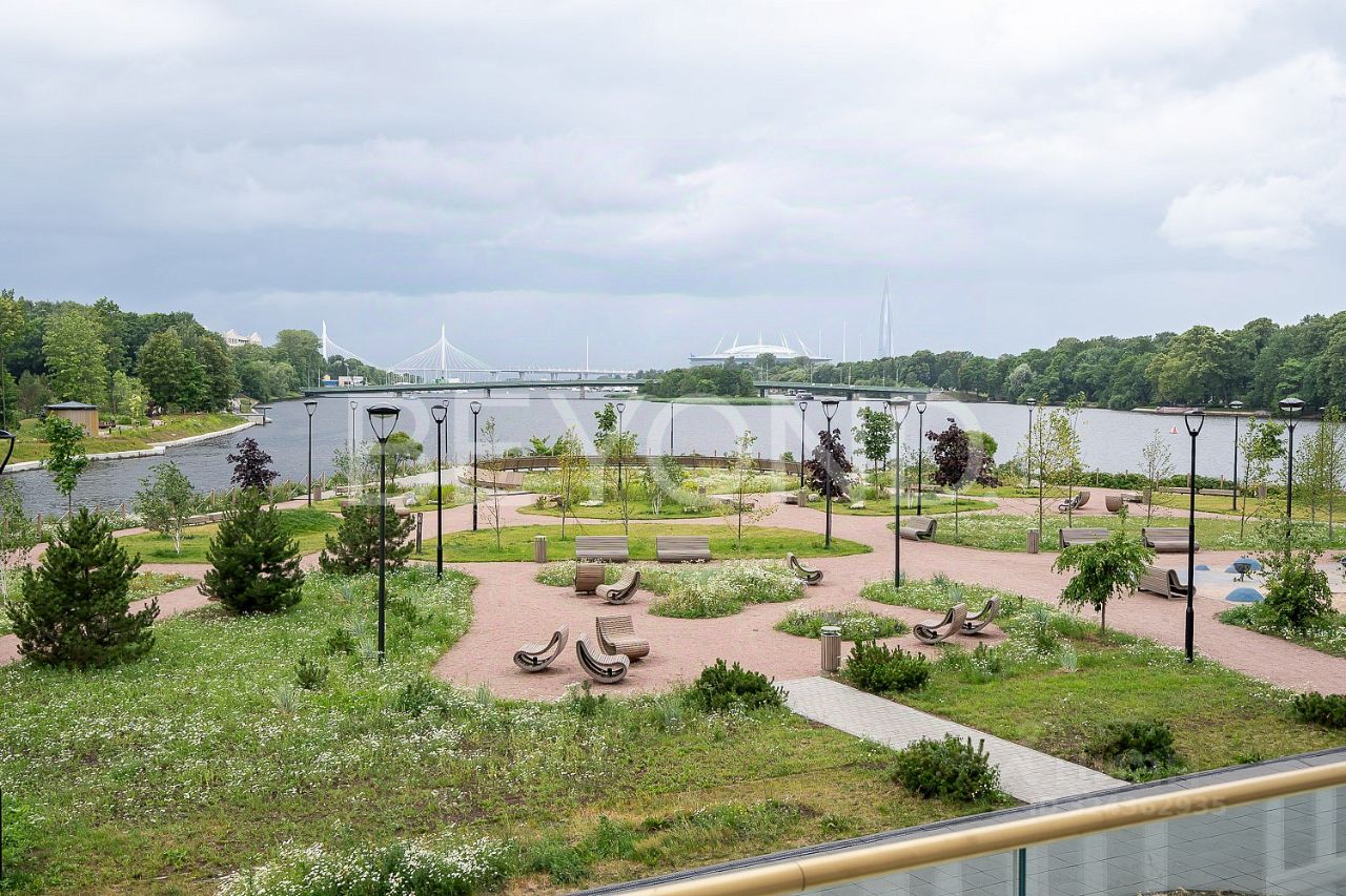 Редкое предложение! Предлагается к продаже роскошная видовая квартира общей площадью 265 кв. м с тремя спальнями и огромной кухней-гостиной, четырьмя санузлами, постирочной. Каждая из спален со своей гардеробной и балконом. Гостиная наполнена светом и воздухом. Ее огромные панорамные окна выходят на юг и на запад, там где соединяются Малая Невка, река Ждановка и Финский залив. В квартире выполнен высококлассный дизайнерский ремонт, особое внимание уделено выверенной стилистике, функционалу и премиальным отделочным материалам: оникс, панели из натурального дерева, латунь. Мебель Catelan Italy, Leight, Rete, техника Graude, Miele. Светильники от Ralph Lauren. Центральное кондиционирование во всех комнатах, современная система очистки воды, шторы на электроприводе и т.д. Мастер-спальня со своей гардеробной и эффектным санузлом. В постирочной помимо стирально-сушильной машины Miele установлены удобные хозяйственные шкафы. Окна двух детских и мастер-спальни выходят в тихий благоустроенный внутренний двор. Элегантная кухня Leight (Германия) полностью оснащена качественной бытовой техникой, в том числе профессиональной вытяжкой. Площадь кухни-гостиной составляет более 150 кв. м и объединяет несколько зон: кухню с удобным островом, обеденную зону с большим столом, диванную группу (Италия) с TV зоной и био-камином. В эркере гостиной организована лаунж-зона с удобными креслами для отдыха и наблюдения за проплывающими мимо корабликами и мерцающими огнями Лахта центром и стадионом Зенит-ареной. В эффектной мастер-спальне с кроватью Theodore Alexander две отдельные зоны хранения для мужской и женской одежды.