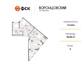 Цена со скидкой до 30% в прямой продаже от застройщика — только в этом месяце. Беспроцентная рассрочка. 3-к квартира в ЖК UP-квартал "Воронцовский" на 4-м этаже. Общая площадь 90,64. Чистовая отделка.