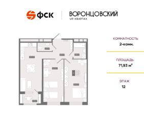Цена со скидкой до 30% в прямой продаже от застройщика — только в этом месяце. Беспроцентная рассрочка. 2-к квартира в ЖК UP-квартал "Воронцовский" на 12-м этаже. Общая площадь 71,93. Чистовая отделка.