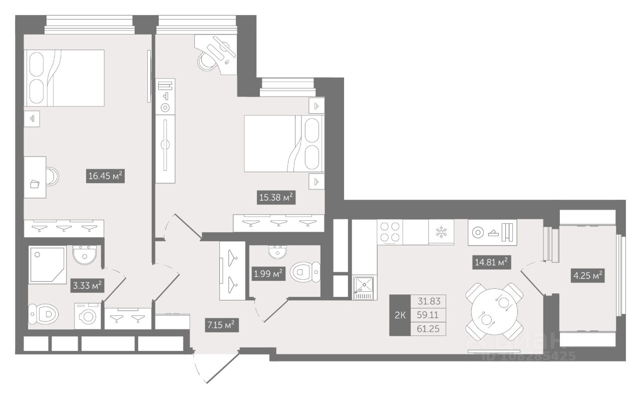 Цена со скидкой до 30% в прямой продаже от застройщика — только в этом месяце. Беспроцентная рассрочка. 2-к квартира в ЖК UP-квартал "Воронцовский" на 2-м этаже. Общая площадь 61,24. Чистовая отделка.