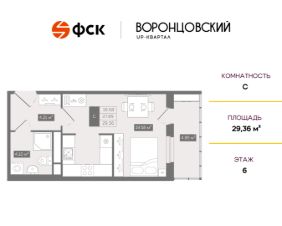 Цена со скидкой до 30% в прямой продаже от застройщика — только в этом месяце. Беспроцентная рассрочка. Студия в ЖК UP-квартал "Воронцовский" на 6-м этаже. Общая площадь 29,36. Чистовая отделка.