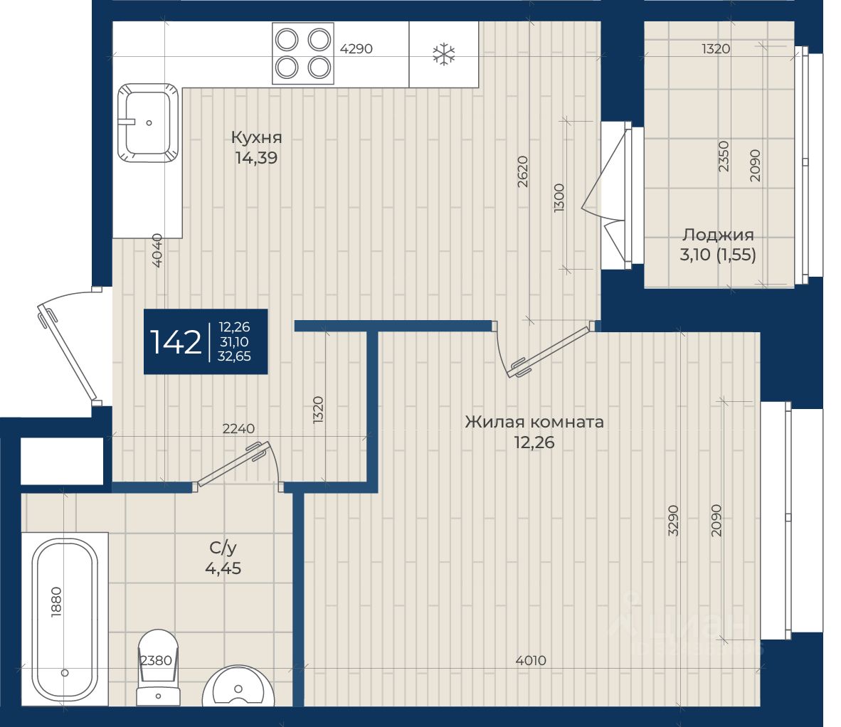 Жилой комплекс "Новатория", 1 очередь строительства, Корпус Б, Квартира 142 общей площадью 32,65 м2 на 7 этаже.ЖК "Новатория" —жилой комплекс комфорт-класса расположен в поселке Новоселье, в окружении леса и Шунгеровского заказника.