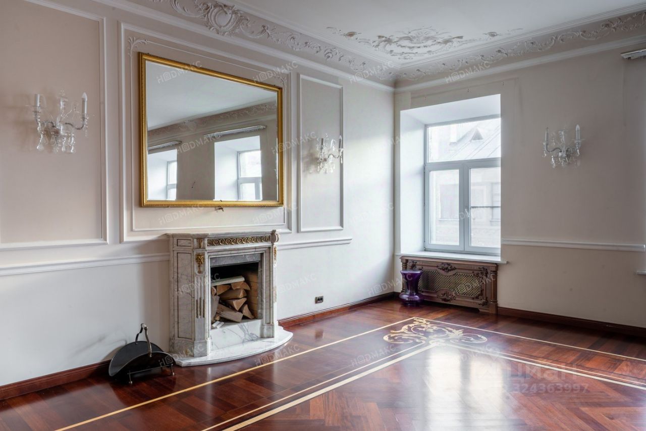 Планировка - две спальни (окна на северо-восток), зал с камином (окна на юго-запад), кухня-столовая (окна на юго-запад), два санузла, гардеробная. Квартира продается без мебели и техники. Все окна выходят во внутренние дворы. Дорогие натуральные отделочные материалы. Лепные потолки 3,2 м.