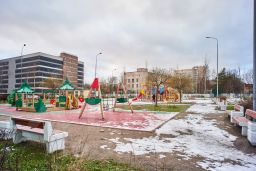 Закрытая охраняемая территория — ваши дети в безопасности. Ухоженный двор с детскими и спортивными площадками.