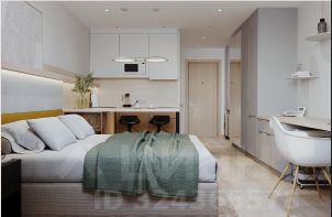 Каждая студия — это функциональное пространство с качественной отделкой под ключ, возможно дополнить меблировкой.