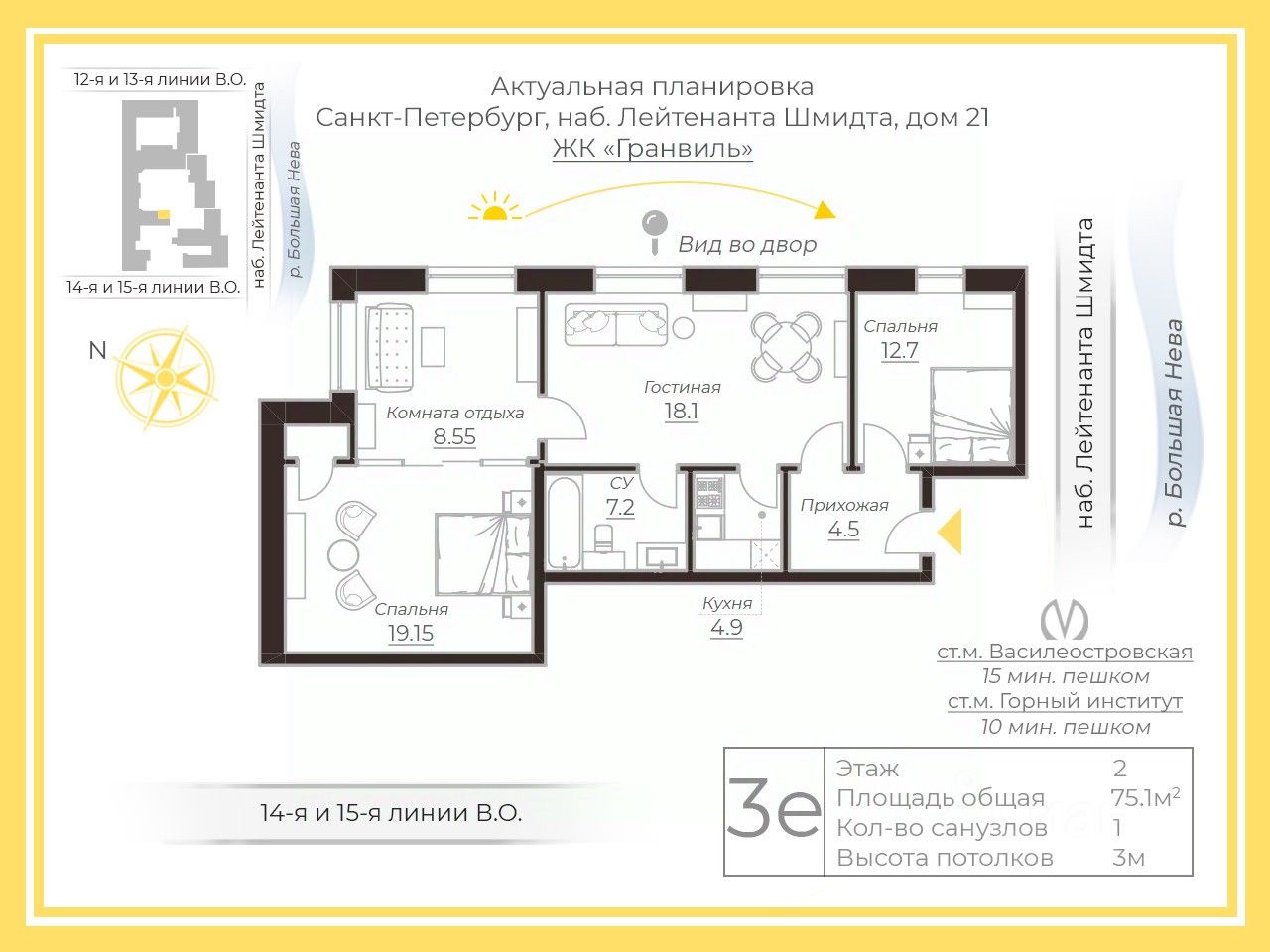 Арт. 126511913 Предлагается вашему вниманию квартира с двумя спальнями в Элитном Жилой Комплекс "ГРАНВИЛЬ", расположенном в самом центре Санкт-Петербурга на Васильевском острове. Дом обладает уникальным местоположением в исторической части города и своим фасадом выходит на набережную Лейтенанта Шмидта.