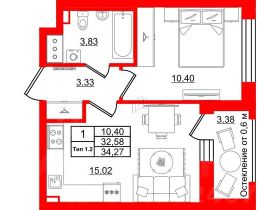 Общая площадь квартиры 32,58 м² + Лоджия 3,38 м².