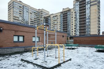 Во дворе — спортивные и детские площадки с мягким покрытием, зелёные зоны для прогулок.