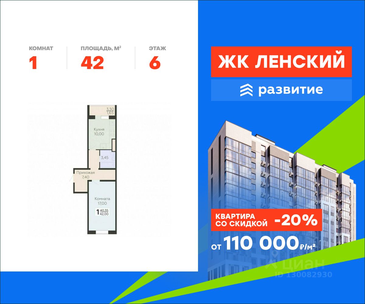 В продаже квартира площадью 42 кв. м с предчистовой отделкой на 6 этаже 16 этажного дома. Квартира находится в 5 корпусе: